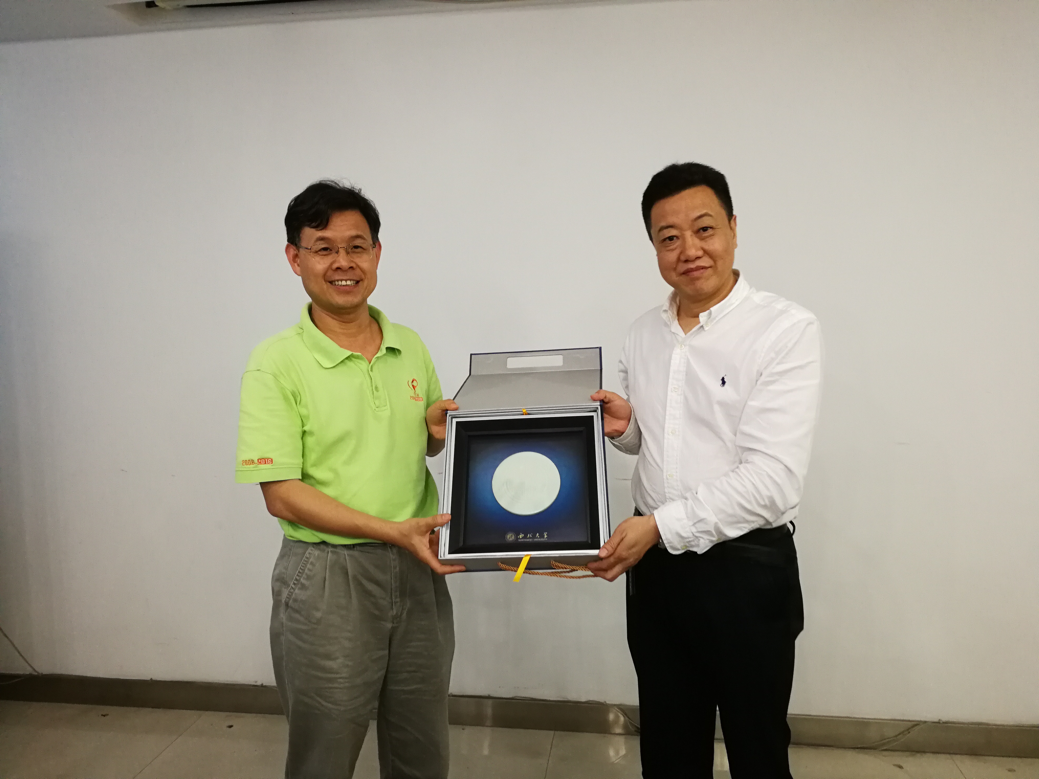 岳田利院长向李从发院长赠送我校纪念品
