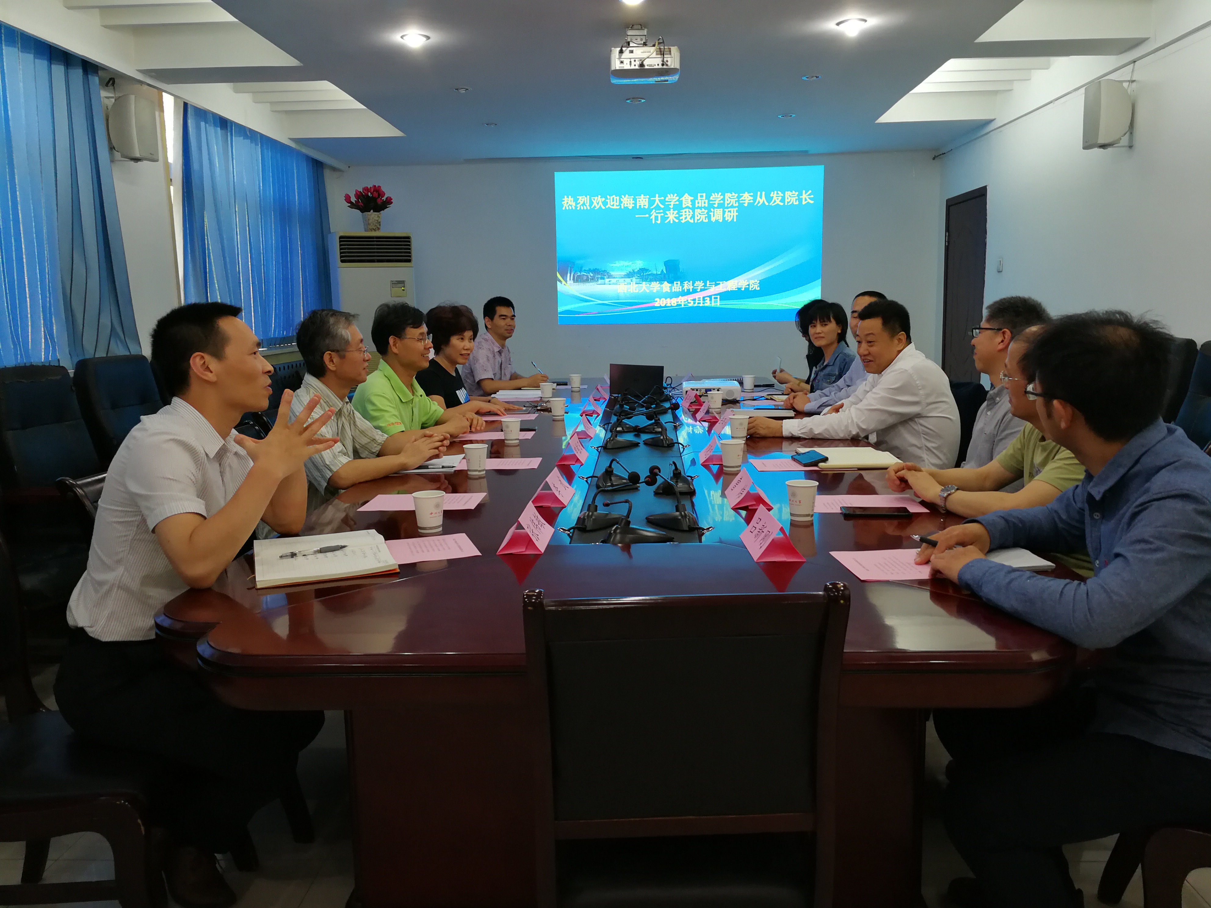 5月3日下午,海南大学威尼斯9499登录入口李从发一行6人来威尼斯官网,考察交流,威尼斯官网院长岳田利、党支部书记刘晓忠及相关老师参加交流座谈会。