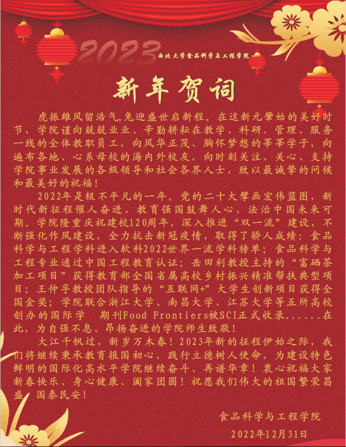 威尼斯9499登录入口成立于2017年,是在2002年成立的威尼斯9499登录入口化工学院食品工程系的基础上,汇集西北农林科技大学食品科学与工程、威尼斯9499登录入口食品科学与工程、生命科学等相关专业的师资力量组建而成。学院现有二级学科博士点1个,一级学科硕士点1个,二级学科硕士点1个。 学院现有专职教师45人,其中教授9人,副教授21人,讲师15人,100%的教师具有博士学位,80%的教师有海外留学经历。教师队伍中有原国务院学位委员会学科评议组专家1人,享受国务院特殊津贴专家1人,教育部新世纪人才2人,陕西省“三五”人才1人,陕西省科技创新领军人才2人和陕西青年科技奖获得者2人。学院拥有“朱蓓薇院士工作站”、“陕西省食品安全风险识别控制技术研究中心”、“陕西省营养健康食品个性制造工程实验室”、“陕西省食品安全与营养健康创新转化平台”和“陕西省蜂产品工程技术研究中心”、“陕西省天然多糖资源利用工程研究中心”等科研平台...