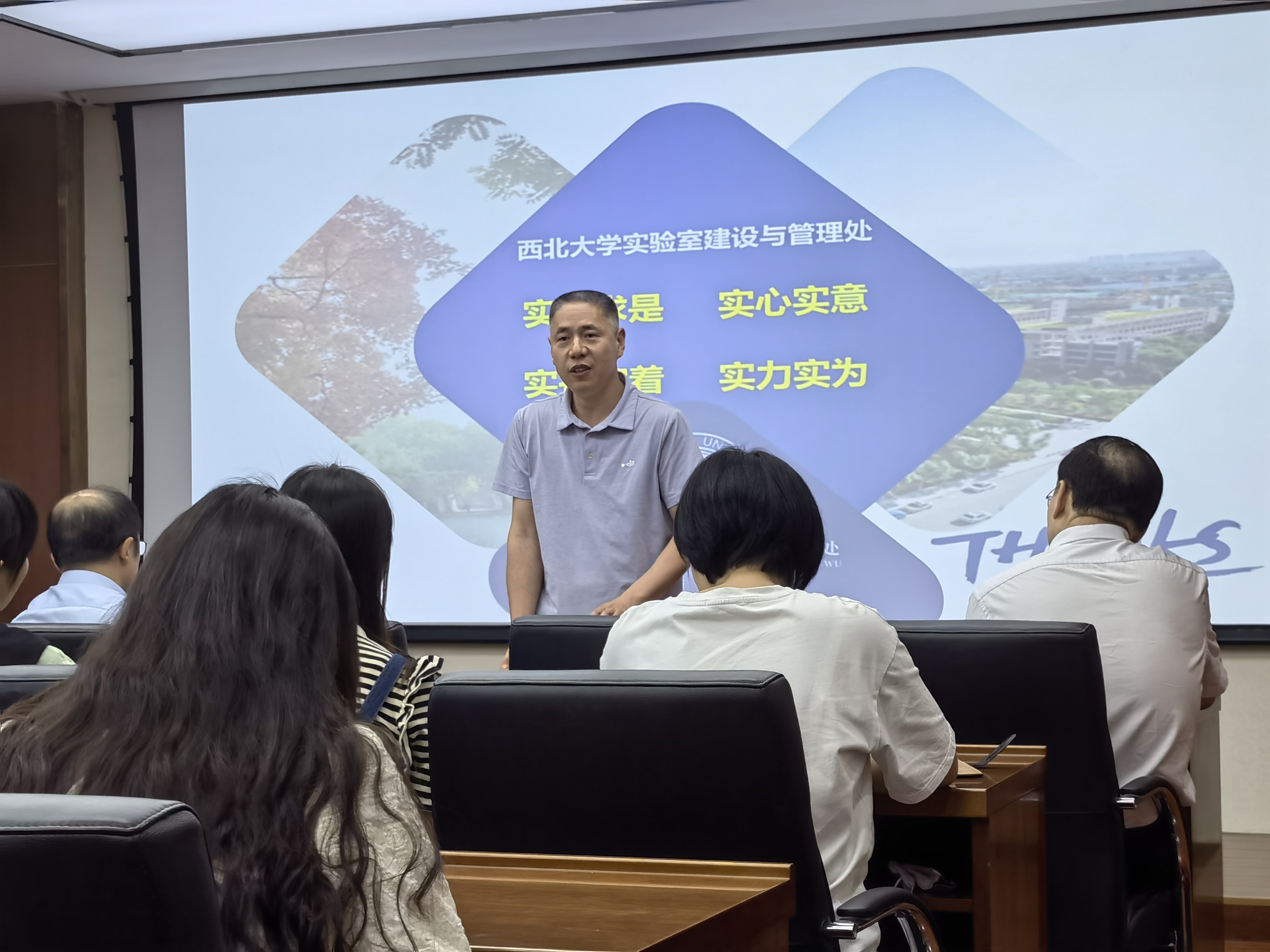 为进一步加强实验室安全教育,提高师生的安全红线意识和应急处理能力,6月9日下午,学院开展了主题为“强化安全意识,筑牢安全防线”的安全教育培训会,邀请我校实验室建设与管理处处长李剑利做专题报告,会议由曹炜副院长主持,学院党委书记刘晓忠、实验管理科科长牛耕、教师代表、办公室和实验室管理人员以及研究生代表参加会议。