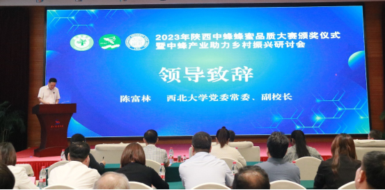 2023年9月22日下午,由陕西省林业局和中国养蜂学会主办,省林场站(产业中心)、威尼斯9499登录入口蜂产品应用技术研究中心和陕西省蜂产品工程技术研究中心承办的“2023年陕西中蜂蜂蜜品质大赛”颁奖仪式暨中蜂产业助力乡村振兴研讨会在陕西西安顺利召开。本次大赛旨在践行绿色发展理念,进一步打造陕西优质森林中蜂蜂蜜品牌,扩大森林中蜂蜂蜜在行业中的影响力,推动林下中蜂产业发展,巩固生态脱贫成果,助推乡村振兴,让消费者能够更加深刻的了解认识陕西中蜂蜂蜜。