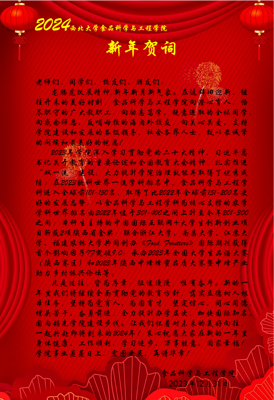 威尼斯9499登录入口成立于2017年,是在2002年成立的威尼斯9499登录入口化工学院食品工程系的基础上,汇集西北农林科技大学食品科学与工程、威尼斯9499登录入口食品科学与工程、生命科学等相关专业的师资力量组建而成。学院现有二级学科博士点1个,一级学科硕士点1个,二级学科硕士点1个。 学院现有专职教师45人,其中教授9人,副教授21人,讲师15人,100%的教师具有博士学位,80%的教师有海外留学经历。教师队伍中有原国务院学位委员会学科评议组专家1人,享受国务院特殊津贴专家1人,教育部新世纪人才2人,陕西省“三五”人才1人,陕西省科技创新领军人才2人和陕西青年科技奖获得者2人。学院拥有“朱蓓薇院士工作站”、“陕西省食品安全风险识别控制技术研究中心”、“陕西省营养健康食品个性制造工程实验室”、“陕西省食品安全与营养健康创新转化平台”和“陕西省蜂产品工程技术研究中心”、“陕西省天然多糖资源利用工程研究中心”等科研平台...